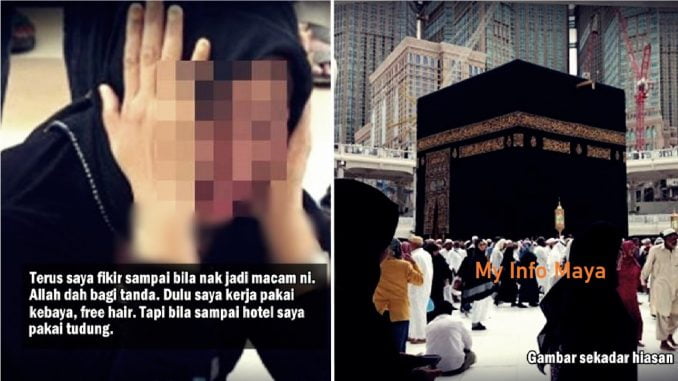 “Kejadian itu saya menci um Hajarul Aswad, telekung tercabut sehingga nampak anak rambut. Maalunya waktu itu depan kaabah. Terus saya fikir sampai bila nak jadi macam ni. Allah dah bagi tanda. Dulu saya kerja pakai kebaya, free hair. Tapi bila sampai hotel saya pakai tudung.