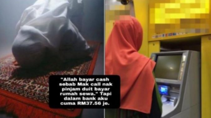 “Allah bayar cash sbab mak call nak pinjam duit bayar rumah sewa” tapi dalam bank aku tak banyak, cuma ada RM37.56 je