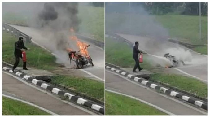 Menerusi hantaran Facebook PoIis Daerah Kulai, keb4karan dipercayai berpvnca daripada perc1kan ap1 di bahagian enjin motosikal itu.