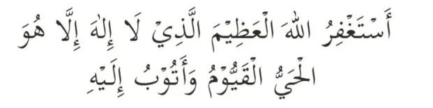 Maksudnya: Aku memohon keampunan daripada Allah, Tuhan Yang Maha Agung, tiada Tuhan melainkan Allah. Dia hidup, berdiri dengan sendirinya, dan aku memohon keampunan daripadaNya.