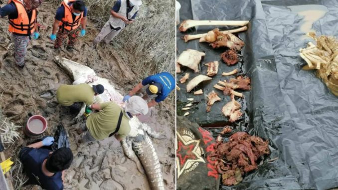 “Hasil bedah siasat itu menemukan baju serta beberapa bahagian anggota badan manusia di dalam perut buaya berkenaan,” katanya, sambil menambah umpan itu dipasang oleh SWAT dengan kerjasama Perbadanan Perhutanan Sarawak (SFC) dan polis.