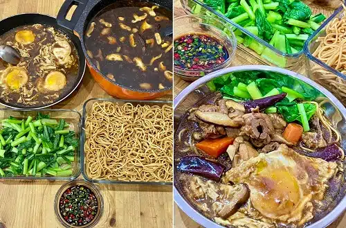 4. Bila dah nak dihidangkan, masukkan 2 senduk kuah ke dalam kuali kecil. Masukkan 1 gulung yee mee, sayur sawi dan pecahkan sebiji telur. Jika perlu, tambahkan lagi kuah. Biarkan mee lembut dan telur separuh masak. Tutup api dan angkat mee. Ulang langkah 6 untuk hidangan yee mee yang lain.