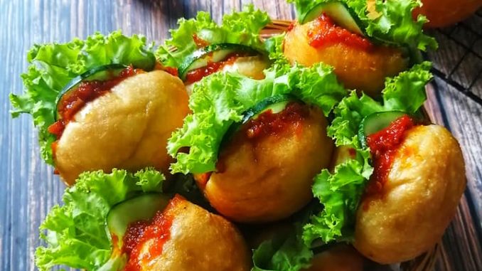 4. Semasa menggoreng, balikkan sebelah-sebelah, kemudian angkat dan toskan minyak. Apabila sejuk, belah beger, jangan bagi putus, masukkan sambal bilis dan salad. Sedia untuk dinikmati.