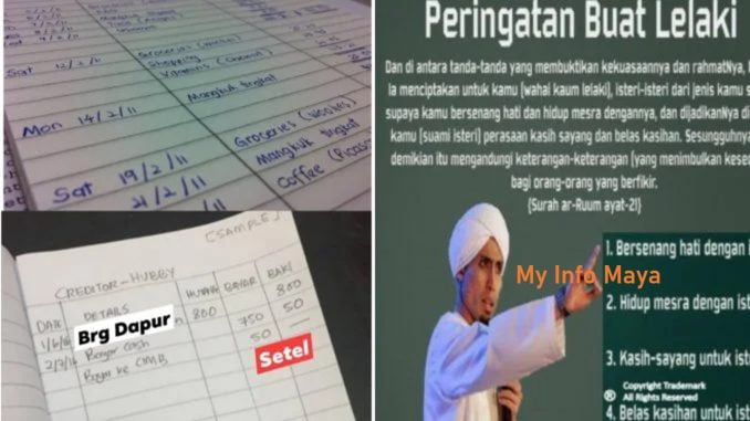 Maka ambik 1 buku, catat segala perbelanjaan yg anda sebagai isteri keluarkan utk keluarga anda…