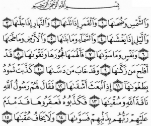 Untuk Raka’at pertama setelah anda membaca Surat Al Fatihah, kemudian dilanjutkan dg membaca Surat Asy Syamsu (Wasy Syamsi Wadluhaaha). Ingat Suratan Asy Syamsu dibawah ini dibacakan di Raka’at Pertama setelah membaca Surat Al Fatihah