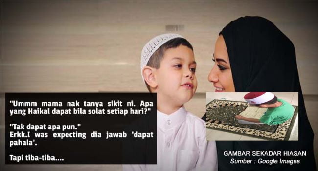 “Ummm mama nak tanya sikit ni. Apa yang Haikal dapat bila solat setiap hari?”