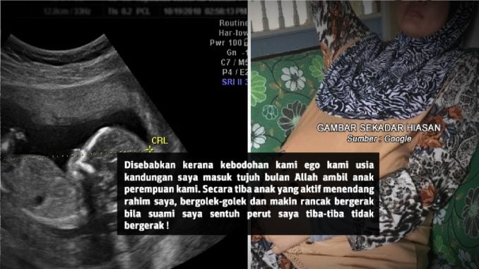 Kami ke klinik dan klinik maklumkan anak kami tiada heartbeat! Jantungnya sudah berhenti! Refer saya ke hospital dan hospital confirm anak kami yang bakal la hir lagi 2bulan ni telah mening gal dalam kandu ngan.