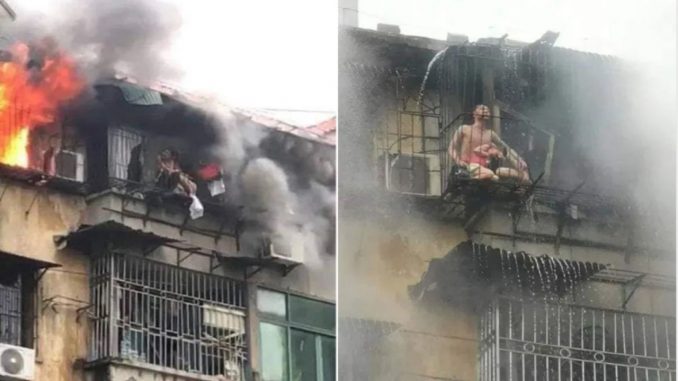 Dalam kejadian yang berlaku di daerah Liwan, Guangzhou itu, suami isteri itu menjadi ‘benteng’ dengan memeluk kanak-kanak berusia empat tahun itu selepas mereka terperangkap di tepi tingkap yang berjeriji besi.