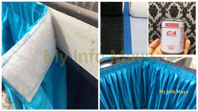 Gam ini kita gunakan untuk lekat velcro tape sebelah yang kasar tu pada table top. Insha Allah boleh menampung berat kain.