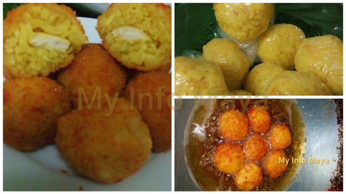 Macam di atas, resepi rice ball itu menggunakan nasi ayam. Anda boleh juga menggunakan nasi putih atau nasi goreng.
