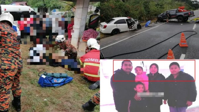 “Kemalangan dipercayai berlaku apabila Toyota Hilux yang dalam perjalanan dari Kuala Lumpur ke Kota Bharu, Kelantan hilang kawalan dan masuk ke laluan bertentangan sebelum bertembung kereta dinaiki keluarga tersebut.