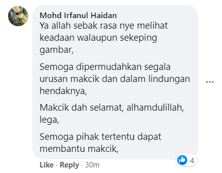 Rata-rata netizen yang melihat gambar tersebut sebak dengan kejadian yang menimpa warga emas itu dan penduduk kampung yang lain.