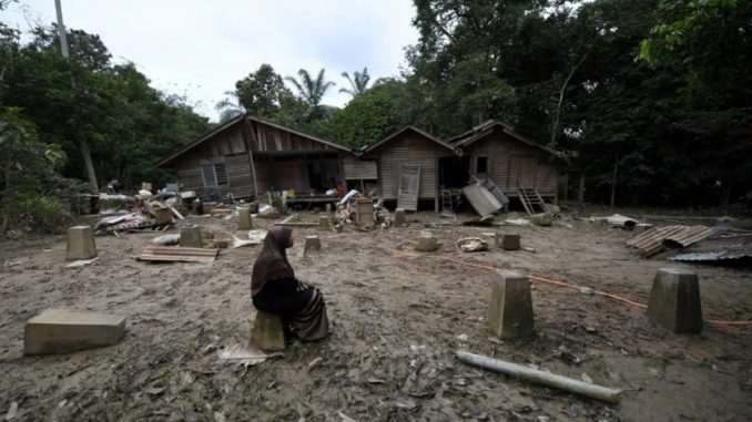 “Penduduk Kampung Ajai, Rafiah Jamaludin, 69, termenung mengenangkan nasib selepas rumahnya hanya tinggal tapak ekoran banjir besar.