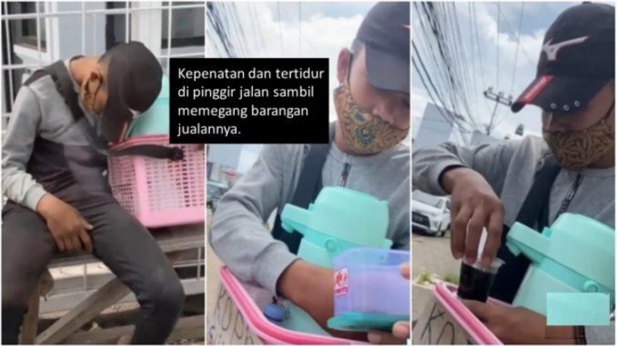 Video yang telah tular di media sosial itu memaparkan seorang remaja sedang kepenatan dan tertidur di pinggir jalan sambil memegang barangan jualannya.