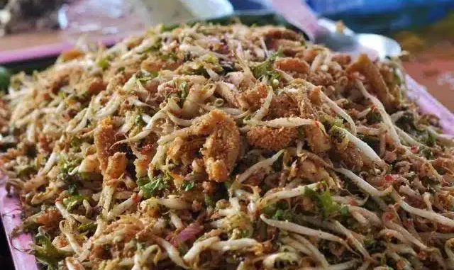 2. Tumbuk udang kering bersama bawang besar dan cili padi hingga halus.