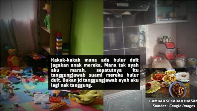 Hari2 ye, tanpa menghulurkan duit sesen pun. Bila aku balik nak makan, anak2 mereka aku yg jagakan, sebab mereka balik nak makan je. Hati aku sedih bila mak aku ckp “mak x sempat nak makan lagi” sbb sibuk cucu2 dia buat hal mana dia nak masak lagi. Lepas aku bising2 suruh hulur beras pun jadi lah. Baru kakak2 aku hulur, tu pun kadang2 tak bagi. Suami masing2, macam da yus pun ada. Buat tak kisah bini buat ape.