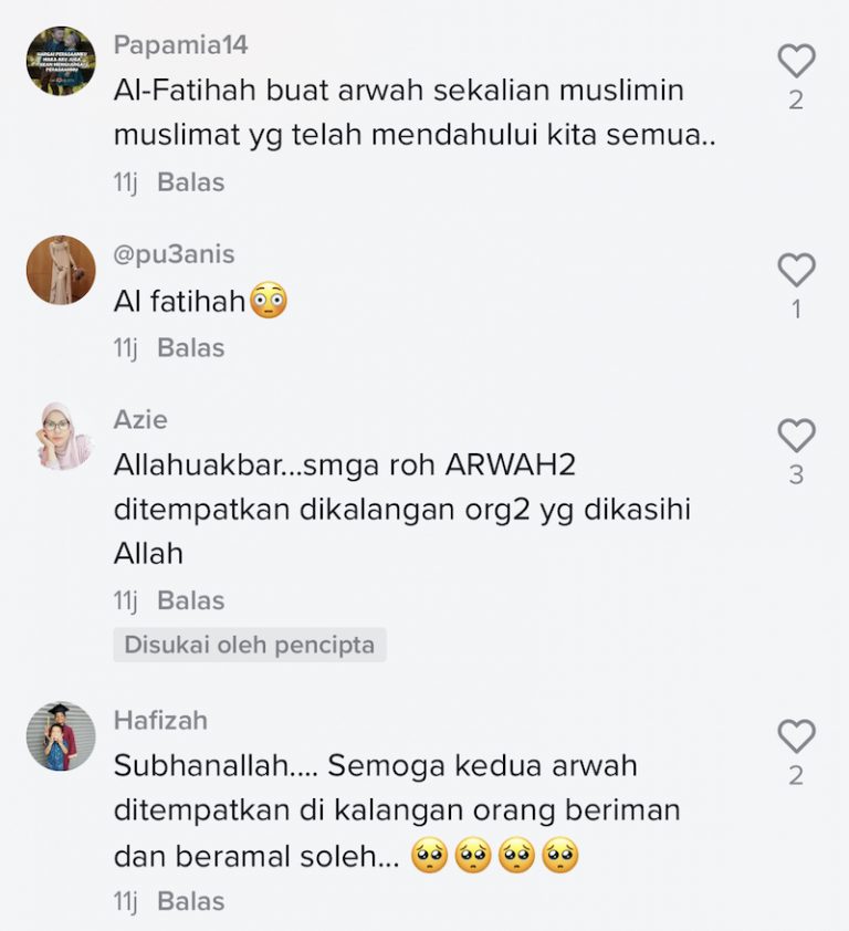 Mereka juga turut mend0akan agar allahyrham abang serta bapa pengguna TikT0k itu terus dicucu.ri rahmat dan ditempatkan dalam kalangan orang yang beriman.