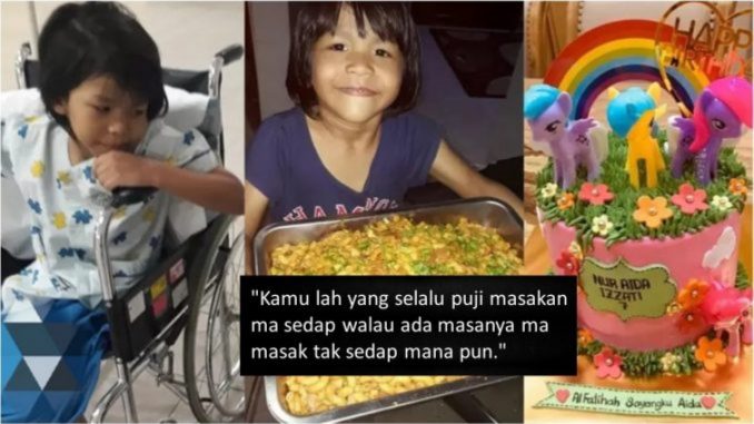 Menurut seorang ibu yang dikenali dengan nama SharmiIa Ismail memaklumkan anak perempuannya, Nur Aiida lzzati telah menghem.buskan nfas terakhirnya pada 28 November 2020 aki bat knser sark0ma.