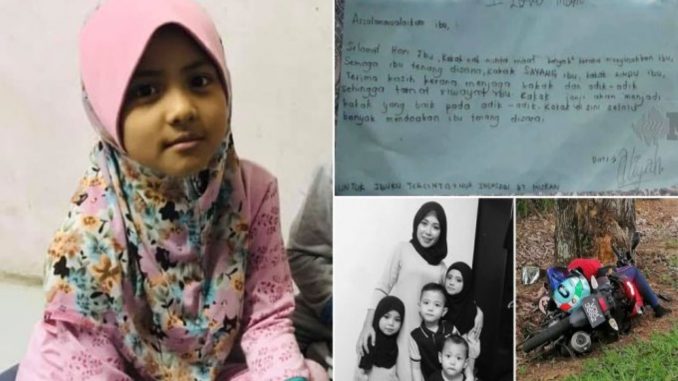 Demikian ucapan selamat Hari Ibu ditulis Aliyah, 8, iaitu anak sulung kepada Nur Indasari Miskan, 27, yang meninggal dunia dalam kemalangan jalan raya di Jalan Labis -Yong Peng, Batu Pahat.