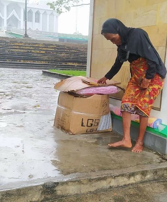 Seseorang yang merakam nenek yang berada dalam hujan itu bercakap dan bertanya mengapa nenek itu tidak pergi ke dalam masjid untuk tidur,” menurut pernyataan dalam catatan itu.