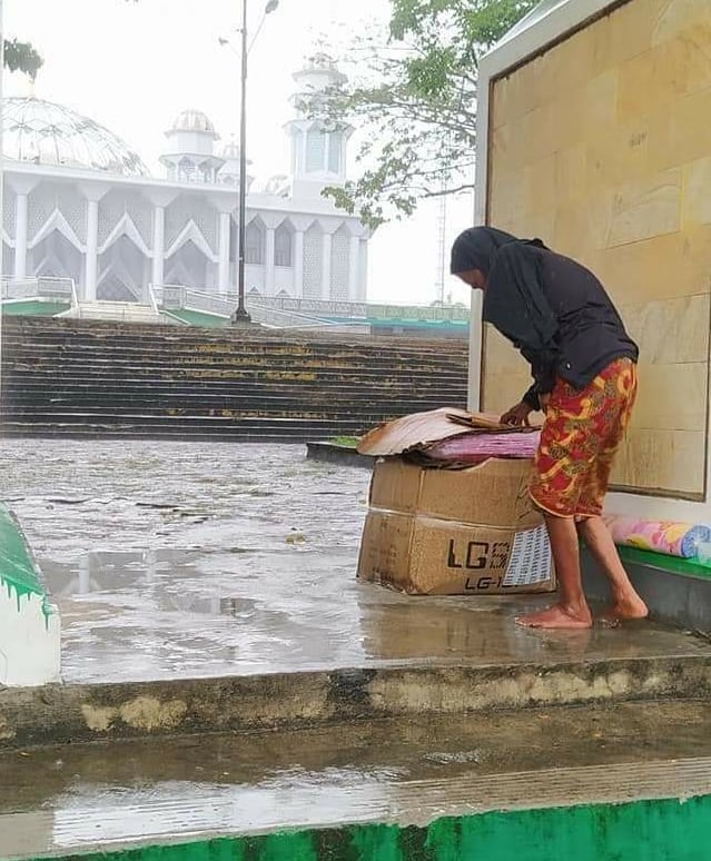 Seorang nenek tua menjadi perhatian orang ramai yang tinggal di halaman sebuah masjid di daerah Kendari kerana tidak memiliki rumah. Berbekalkan peralatan untuk barang-barang peribadi yang dimuatkan dalam kotak besar, wanita tua itu kelihatan kuat dalam menjalani kehidupannya.