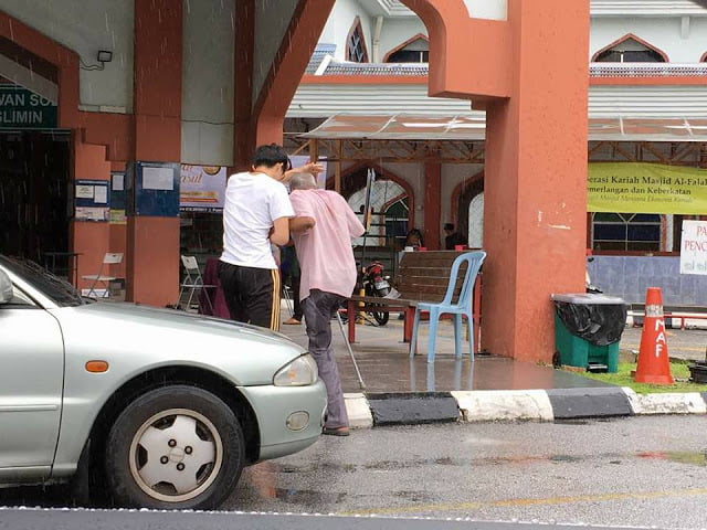 Tindakan Remaja Cina Ini Pimpin Tangan Warga Emas Uzur Ke Masjid Dalam Hujan Lebat Buat Netizen Terharu.