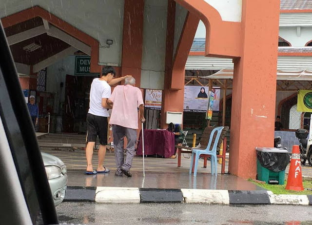 “Bukan saja pimpin tangan pakcik turun dari kereta beliau, malah menggunakan tapak tangan beliau menutup kepala pakcik daripada terkena hujan.