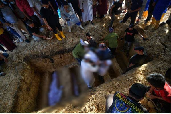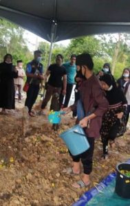 Selain suaminya, Mohamad Hamzah Razali, pengebvmian jnazah Allahyrham turut dihadiri kaum keluarga dan sahabat handai mereka yang menyedari pasangan itu juga kehiIangan lima anak termasuk bay1 lelaki yang baru berusia empat bulan.